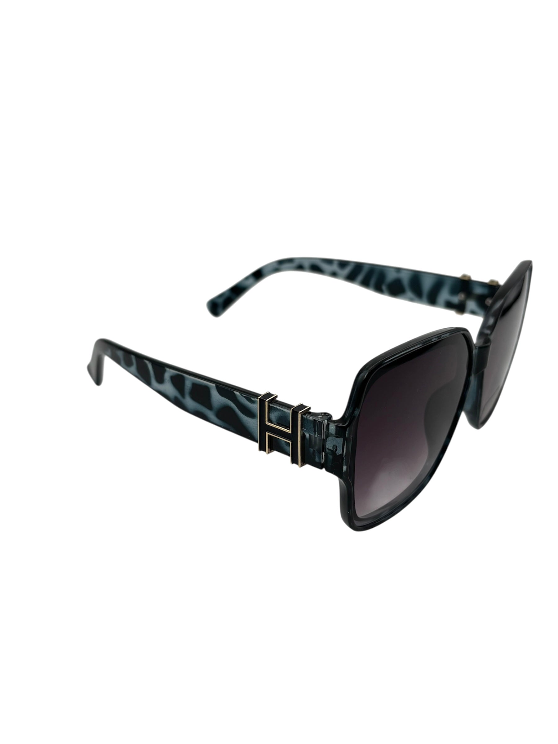 Stylowe, duże okulary przeciwsłoneczne z unikalną, niebiesko-czarną oprawką z nadrukiem w panterkę i eleganckimi, ciemnymi soczewkami gradalnymi. Zaprojektowane, aby dodać każdej stylizacji wyrazistego, modnego akcentu, zapewniając jednocześnie ochronę UV400 przed szkodliwym promieniowaniem słonecznym. Lekkie, wygodne i idealne na co dzień, na wakacje lub do efektownych stylizacji.
