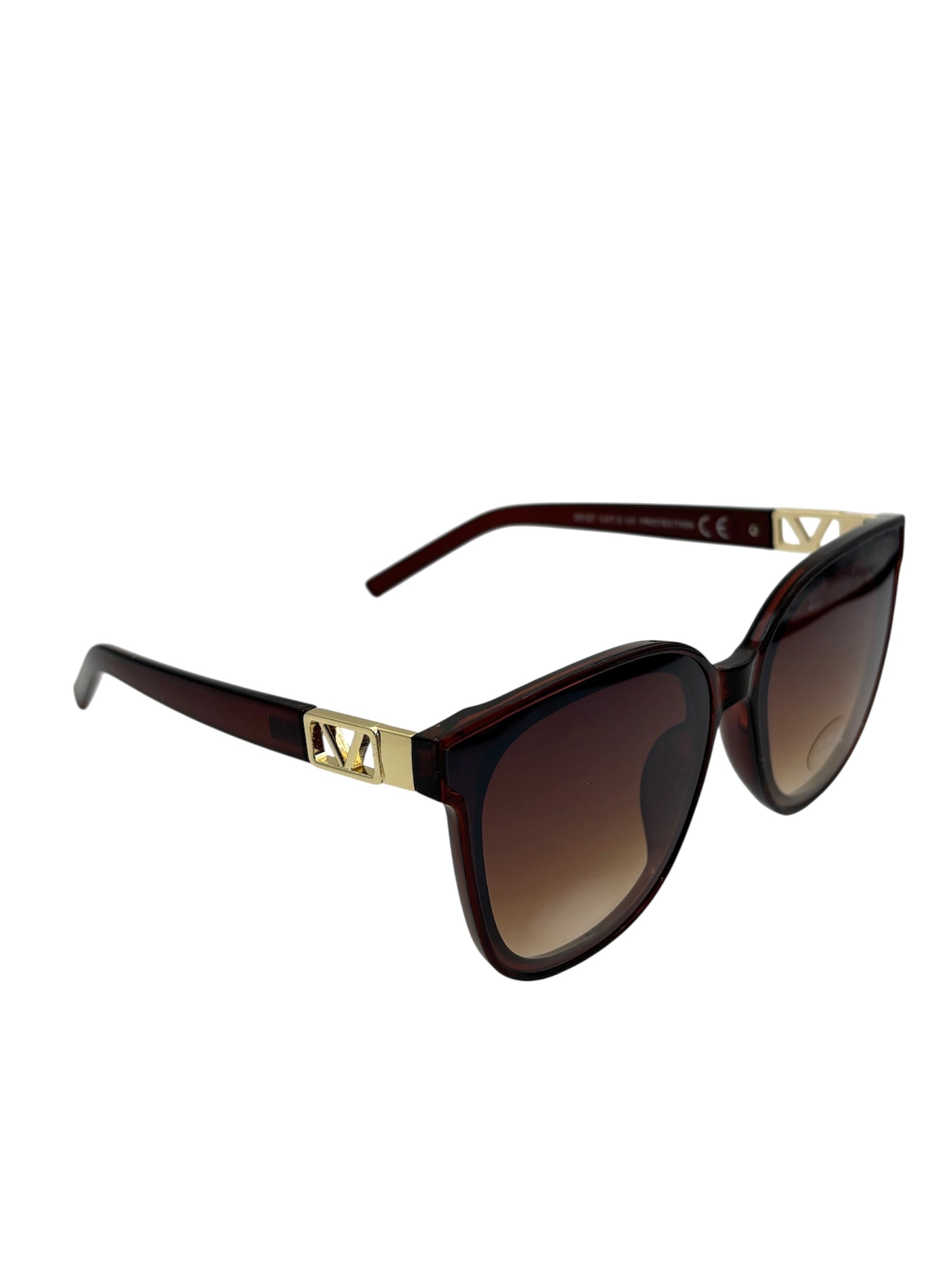Wyróżnij się dzięki tym eleganckim, klasycznym, oversize'owym okularom przeciwsłonecznym z ponadczasową brązową oprawką i szykownymi złotymi akcentami. Zaprojektowane z myślą o stylu i komforcie, dodadzą wyrafinowania każdej codziennej lub eleganckiej stylizacji.