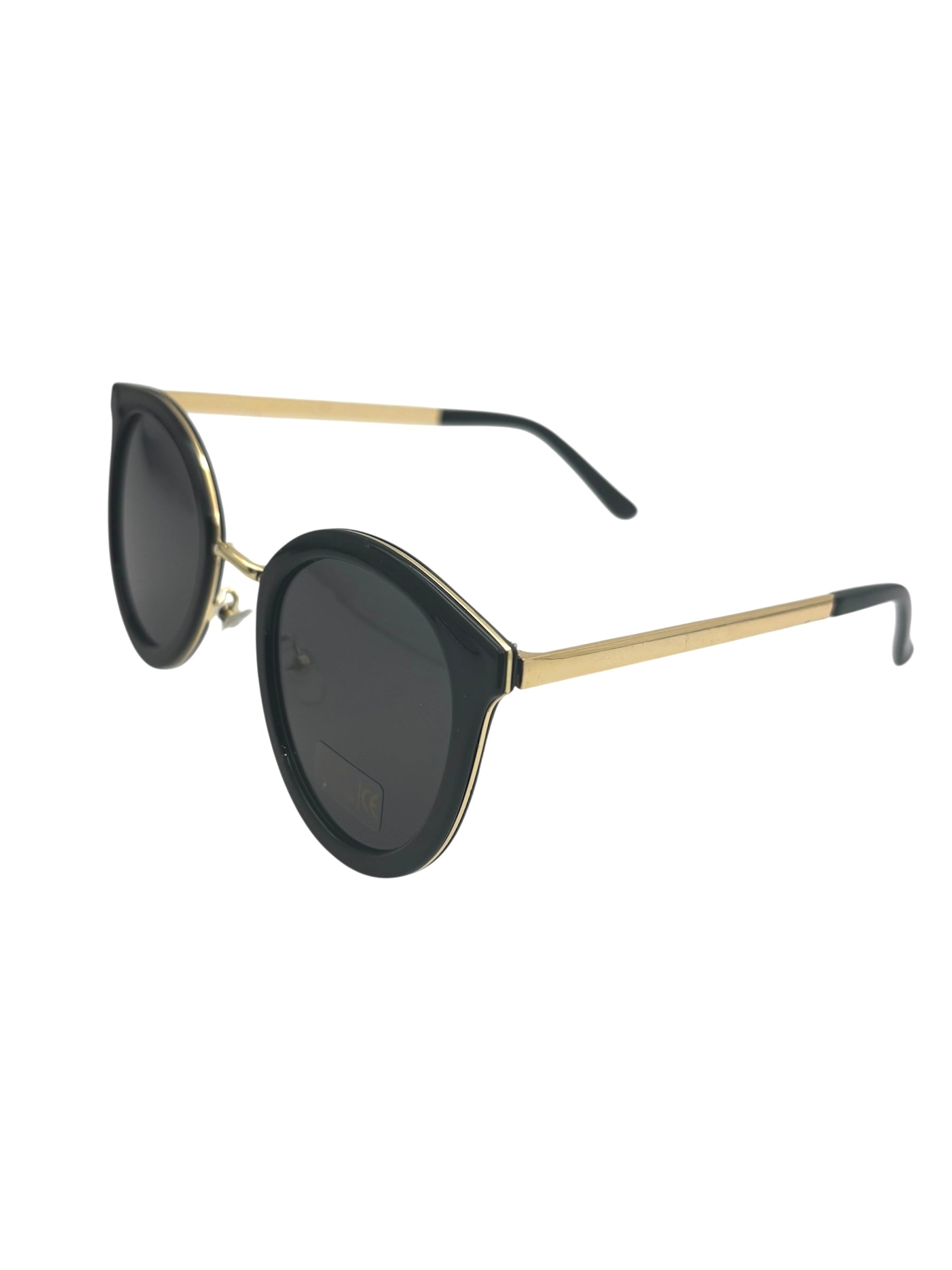 Klasyczne, okrągłe okulary przeciwsłoneczne z eleganckim, złotym mostkiem, które nadają im ponadczasowy, stylowy wygląd. Lekkie i wygodne do noszenia na co dzień. Ciemne soczewki zapewniają ochronę UV400, dzięki czemu idealnie nadają się na słoneczne dni, a jednocześnie dodają elegancji każdej stylizacji.