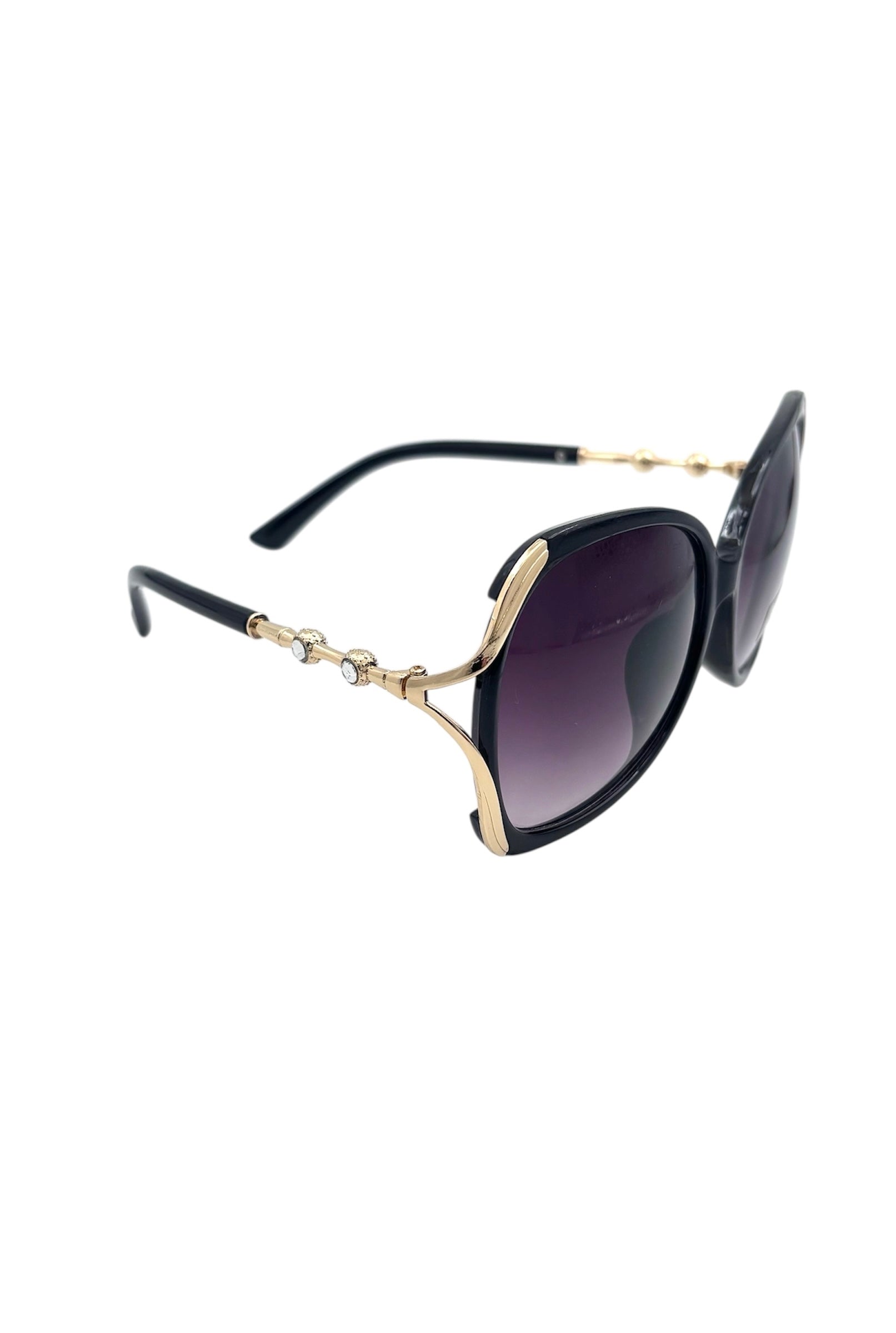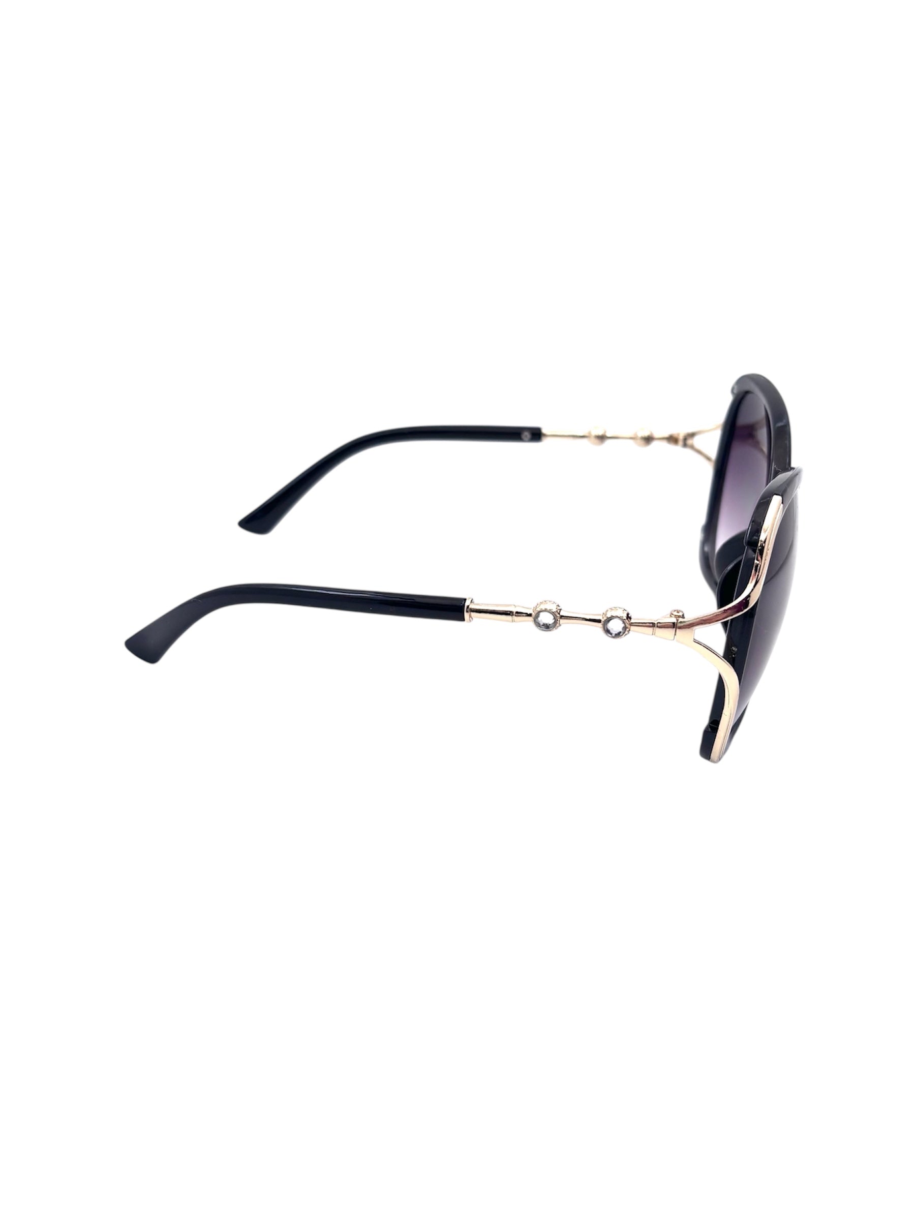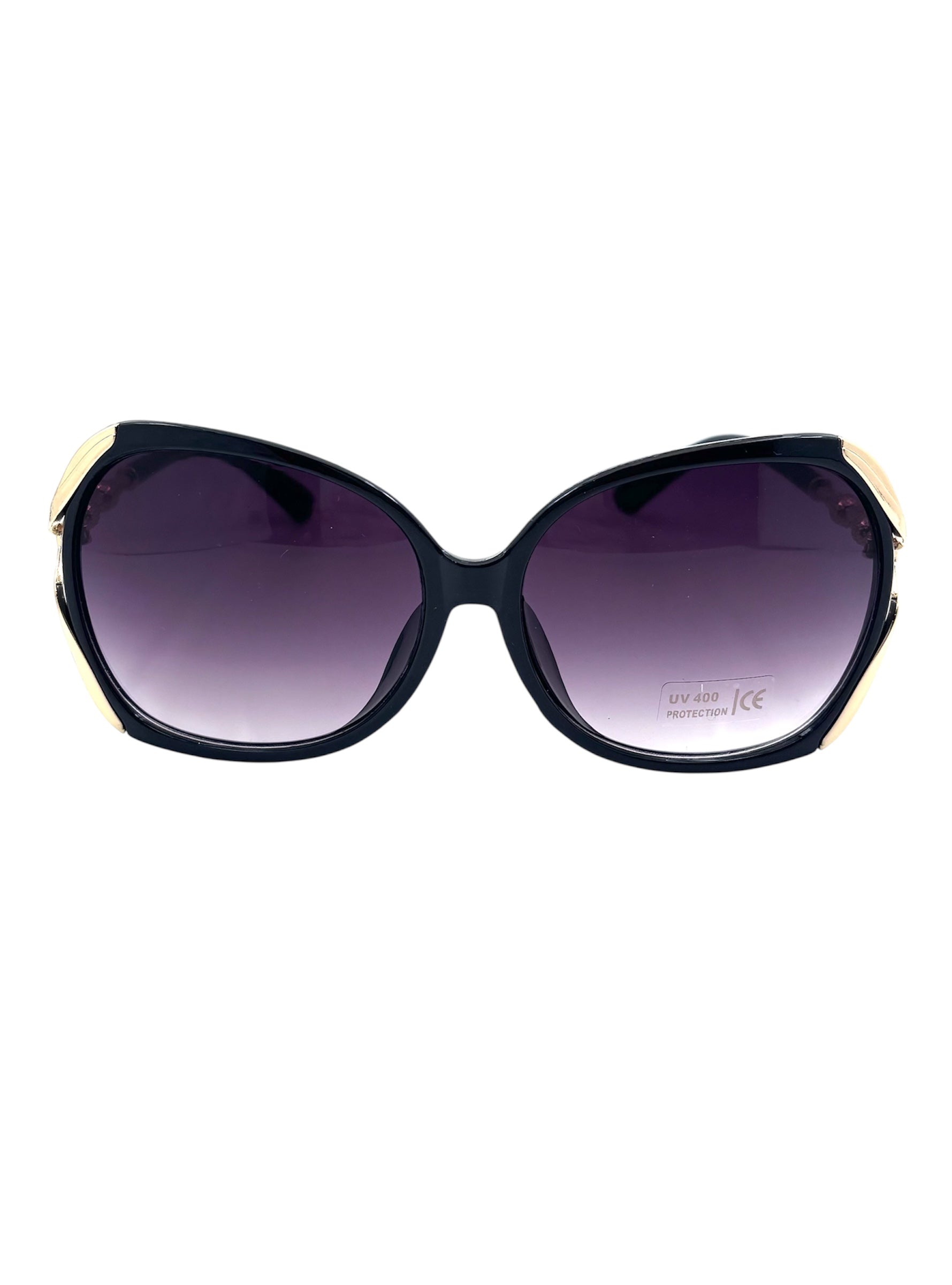 Eleganckie, oversize'owe okulary przeciwsłoneczne, które dodadzą uroku każdej stylizacji. Eleganckie, czarne oprawki z eleganckimi złotymi detalami łączą w sobie odważny styl z codzienną wygodą. Soczewki UV400 zapewniają niezawodną ochronę przed szkodliwym promieniowaniem słonecznym, dzięki czemu idealnie nadają się do noszenia na co dzień, na wakacje i do letnich stylizacji. Ponadczasowe, stylowe i niezwykle luksusowe.