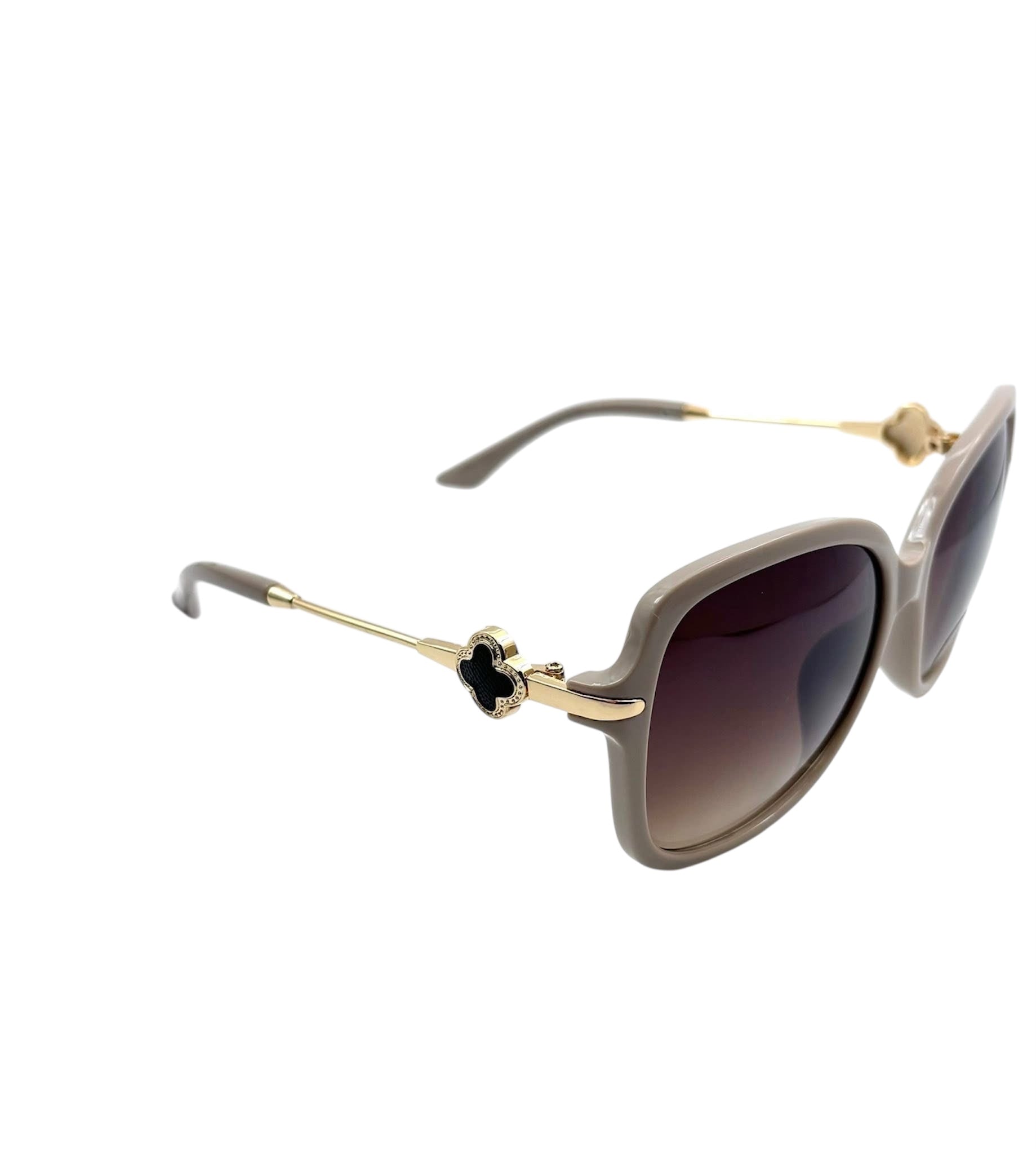 Stylowe, duże okulary przeciwsłoneczne w miękkiej, szarobrązowej oprawce z eleganckimi złotymi akcentami po bokach. Zaprojektowane z myślą o komforcie i modzie, zapewniają ochronę UV400, chroniąc oczy i jednocześnie dodając wyrafinowanego charakteru każdej stylizacji. Idealne na co dzień, na wakacje lub jako dodatek do letniej stylizacji.