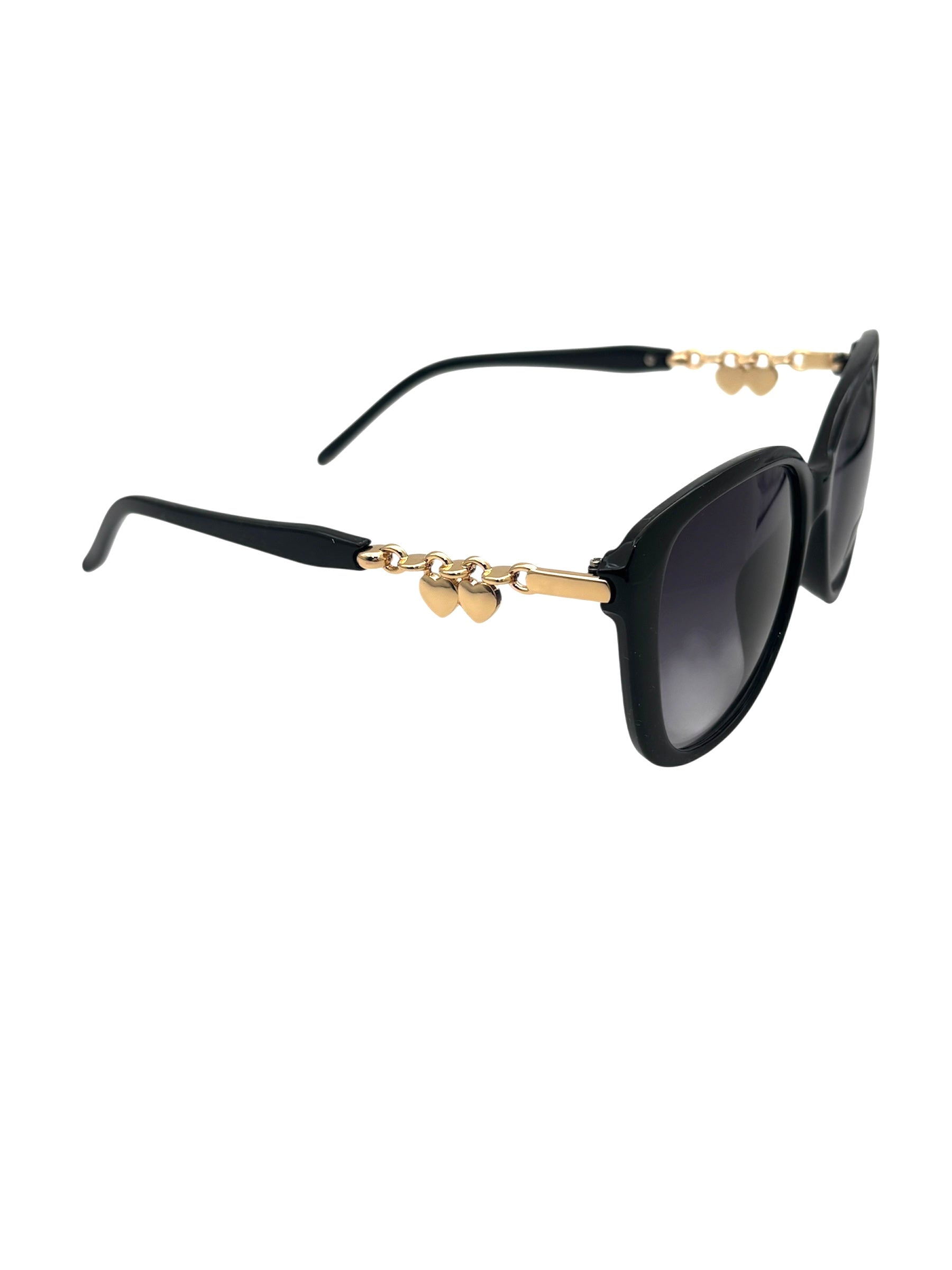 Podkreśl swój codzienny look okularami przeciwsłonecznymi oversize z delikatnymi złotymi łańcuszkami w kształcie serca. Zaprojektowane z myślą o stylu i komforcie, oferują pełną ochronę UV400, jednocześnie dodając każdej stylizacji luksusowego akcentu.