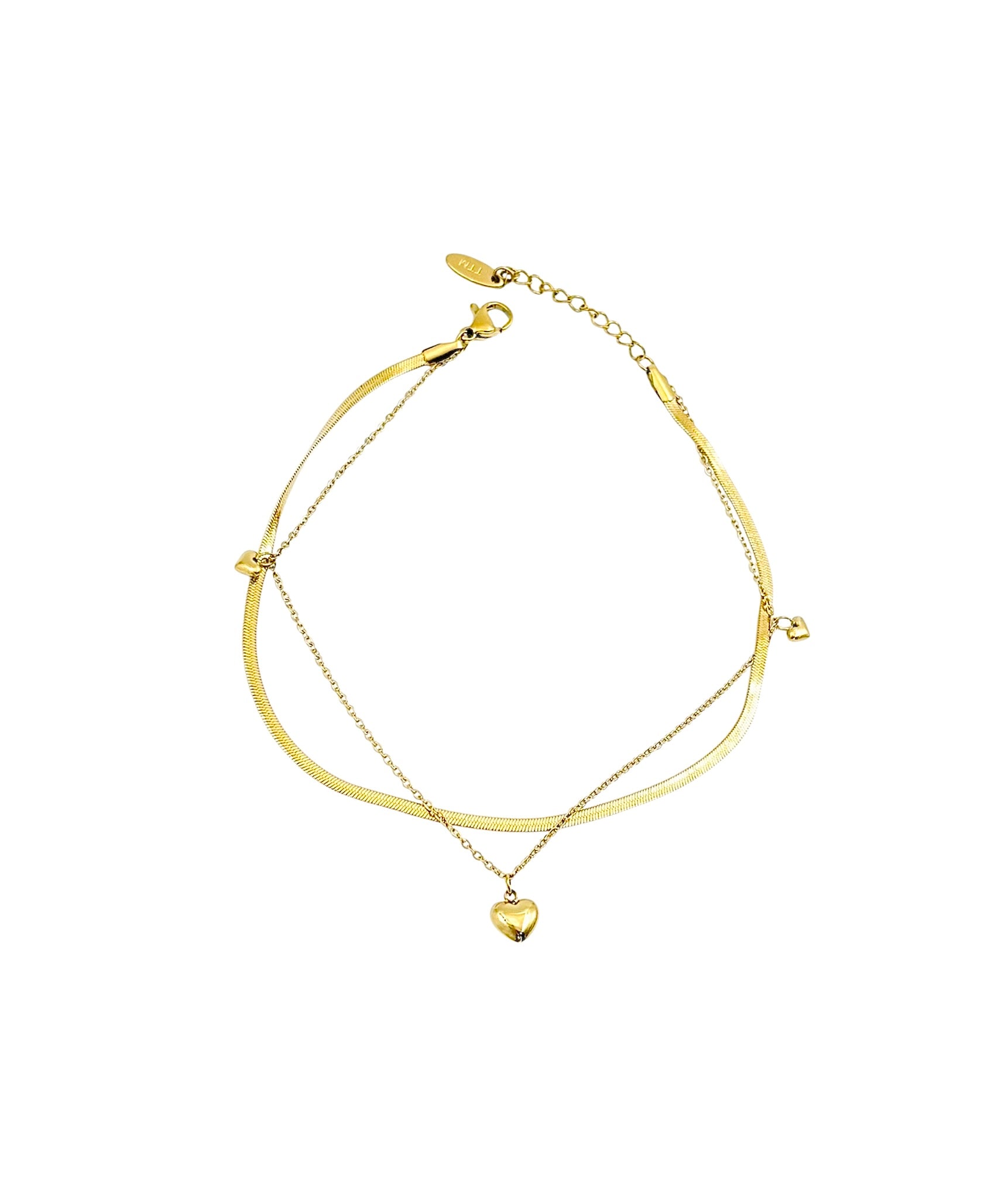 Bransoletka na kostkę z serduszkiem – stal chirurgiczna platerowana 14-karatowym złotem