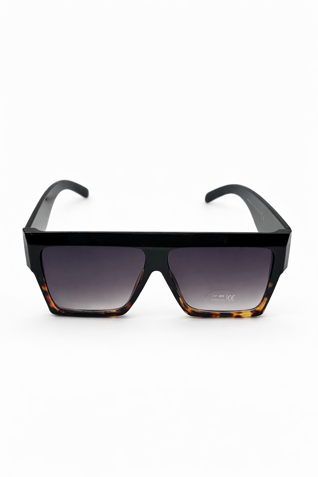 Stylowe, oversize'owe okulary przeciwsłoneczne z płaskim daszkiem, z eleganckimi czarnymi i szylkretowymi detalami. Soczewki gradalne z filtrem UV400 idealnie nadają się na co dzień, na wakacje i w słoneczne dni. Nowoczesne, lekkie i łatwe do stylizacji z każdą stylizacją.